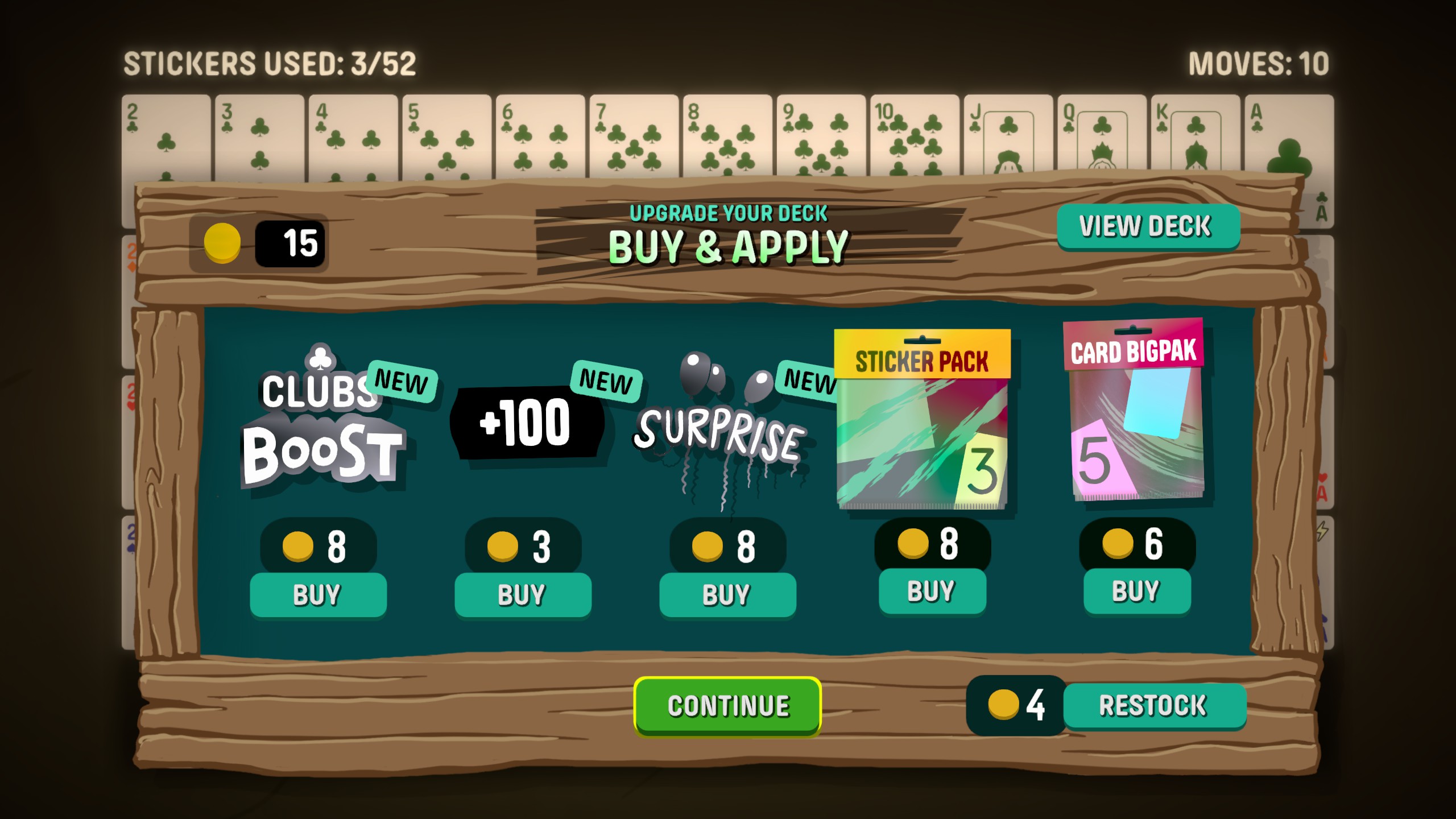 What really drives the progression are stickers and badges. Stickers can be applied directly to cards, modifying how they behave or boosting specific outcomes. You might enhance certain suits, increase multipliers for specific hands, or create synergies that completely reshape how your deck functions. Badges, on the other hand, provide more global bonuses that persist across rounds, further pushing you toward certain builds. The game often nudges you into choosing a direction, either commit heavily to specific card types or lean into sticker-based strategies, and that tension between the two creates a lot of interesting decision-making.