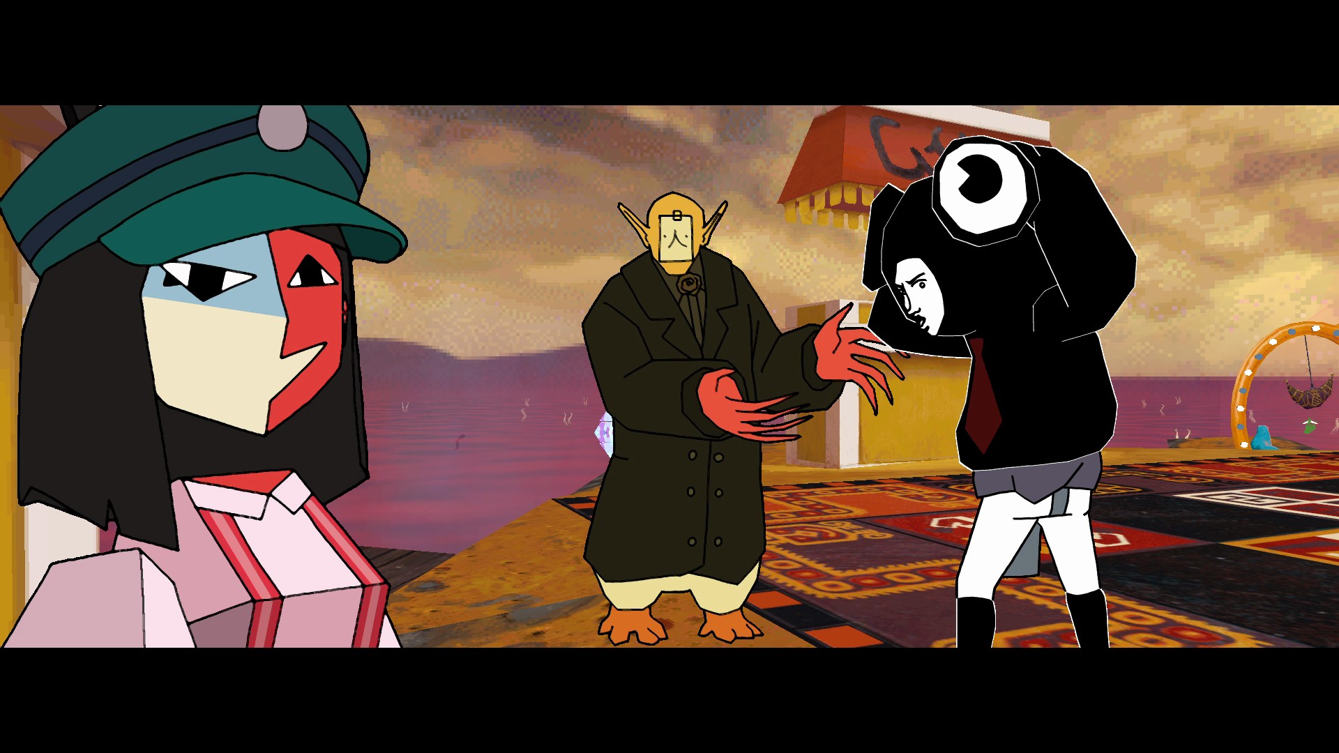 The first chapter is a blend of many different ideas, themes and references. The setting draws inspiration from surrealist art, post-apocalyptic fiction and worldwide culture, especially from Peru and Japan. We can hear dialogues in various languages such as Japanese, French, Russian and Italian. The artstyle combines 2D and 3D animation, utilizing webcore aesthetic, pixelated imagery and the style of Picasso’s abstract paintings. So yeah, it’s pretty avant-garde project.