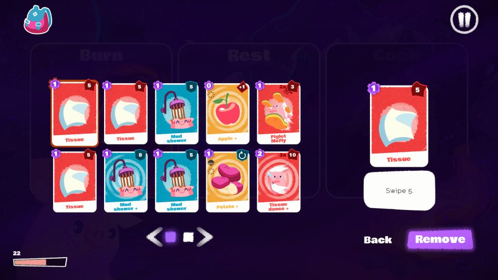 Designing a non-combat roguelike presented unique challenges, especially when compared to traditional combat mechanics. In most games, attacking and defending are parallel actions, visually represented in a similar manner. Our system, where players clean enemies and they “dirty” us is mirrored, so it required careful consideration of color codes, icons, and overall clarity to avoid confusion. We are still working on it!