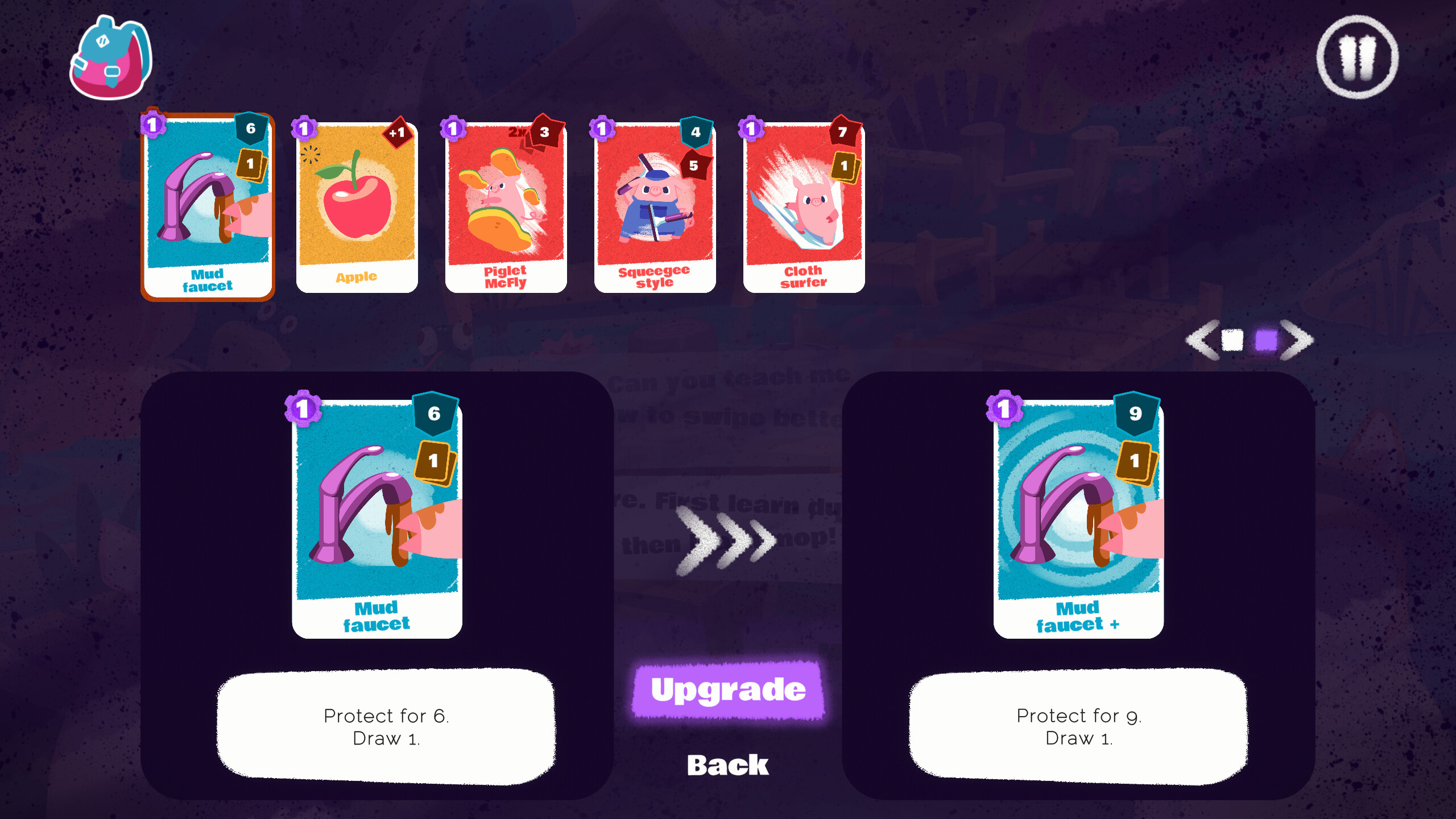 Designing a non-combat roguelike presented unique challenges, especially when compared to traditional combat mechanics. In most games, attacking and defending are parallel actions, visually represented in a similar manner. Our system, where players clean enemies and they “dirty” us is mirrored, so it required careful consideration of color codes, icons, and overall clarity to avoid confusion. We are still working on it!