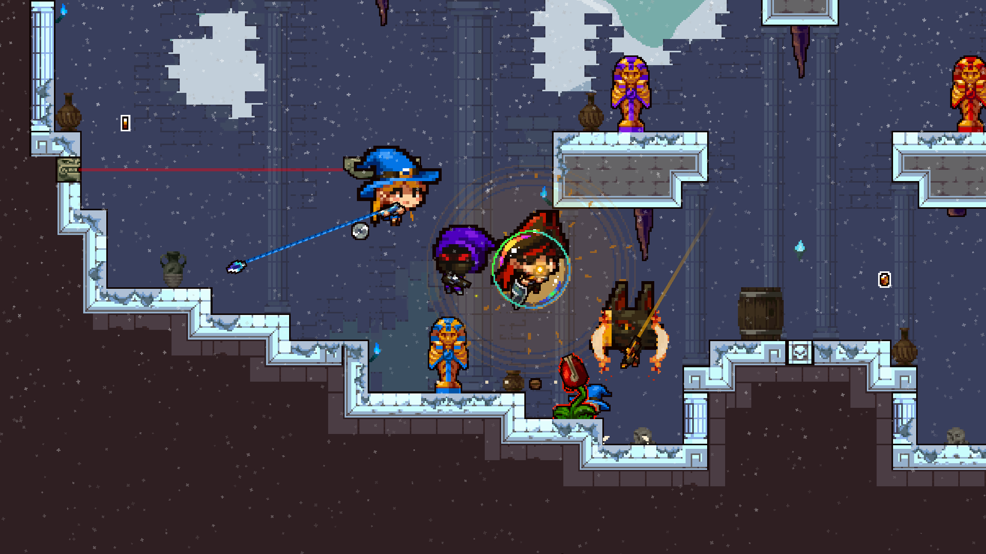 I think a lot of that has to do with platformers typically having very punishing mechanics. I added the grappling hook to combat that. With the grappling hook, you can just point where you want to go, press the grapple button, and go there.