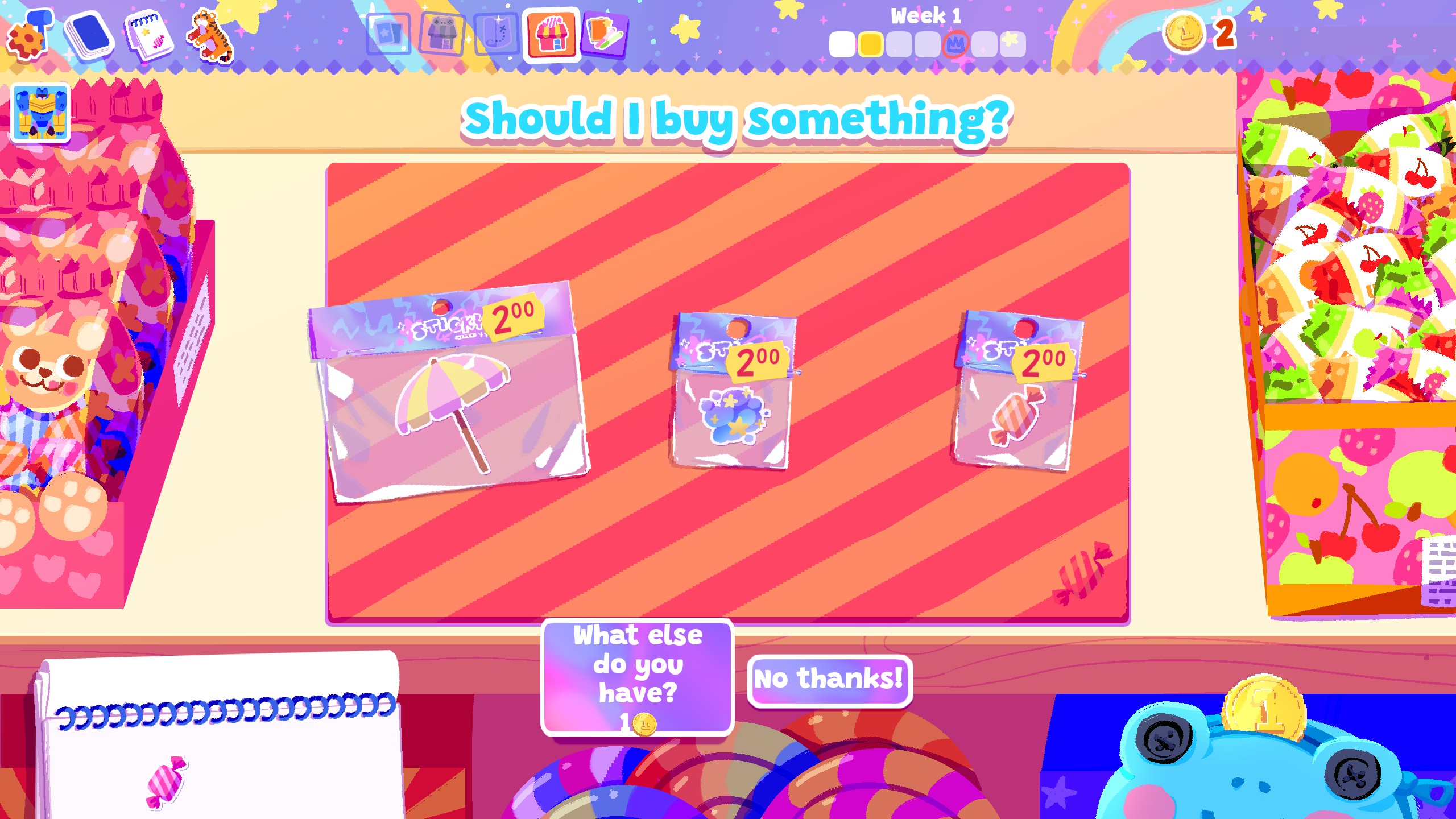 The game loop extends well beyond the card duels, offering several activities between battles to improve and refine your deck. You can engage in treasure hunts to discover new cards, trade with rivals, digging for forgotten sticker treasures, and shop for new stickers or cards. To keep your deck optimized, you also have the option to recycle unwanted cards. Other activities, like finding toys in a claw machine or burying cards in a time capsule, further diversify the experience.