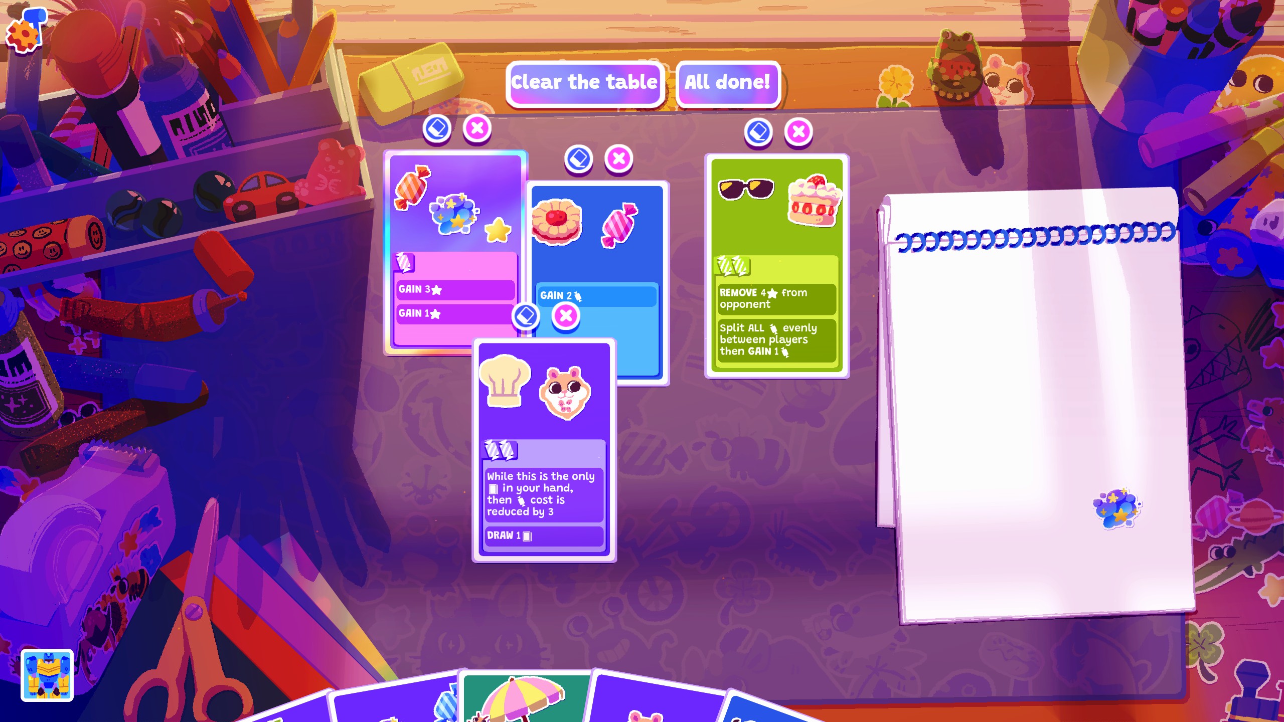 Additionally, content can feel a bit repetitive after your first clear, though there remains a huge amount of room for experimenting with combinations. Its cute, playful, and wholesome art style makes it instantly accessible and appealing to a wide audience. The visual design focuses on the colorful, stickered, and adorably crafted cards, perfectly supporting the game’s lighthearted, friendly tone and emphasizing creativity and fun.