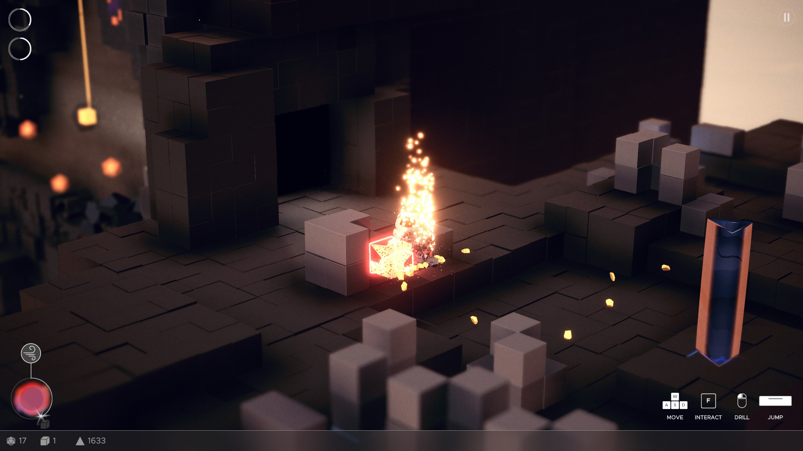 You spend your time mining, but it’s not just mindless clicking. You actively break through layers of different blocks, uncovering branching paths and hidden areas while also using special abilities like bombs to explore faster. Along the way you collect gems, which you return to your main base to fuel upgrades, but to reach more advanced levels, you also need golden cubes.