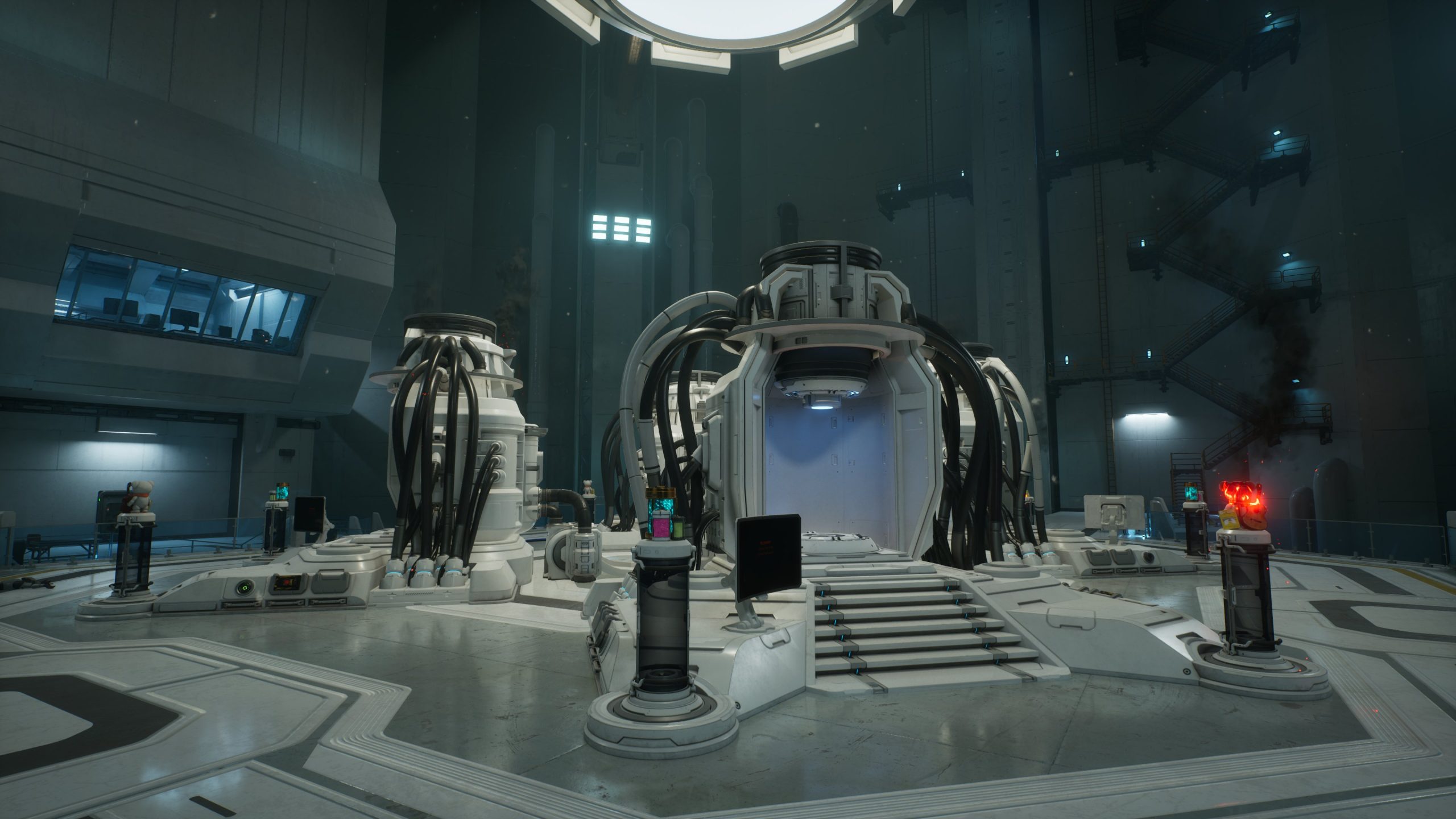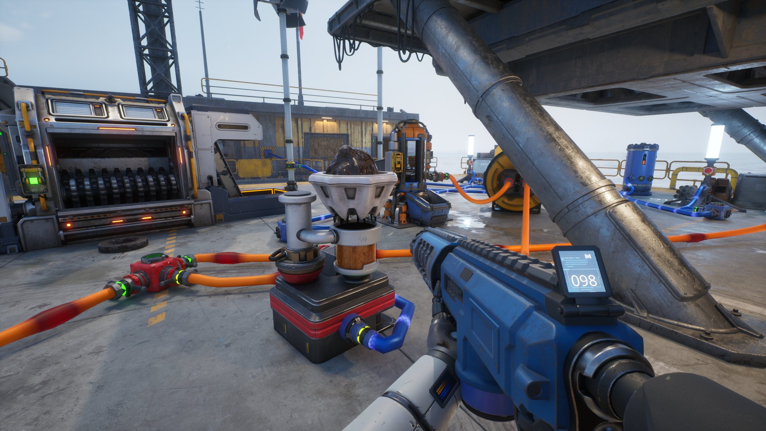In our demo, Ilvessu guided us through the seaside base. The tutorial efficiently introduces the game’s core mechanics, allowing you to freely manipulate and arrange objects to create space. The game encourages creativity by not limiting how you connect things, whether to your suit or other batteries, as long as you can figure out how to chain the connections.