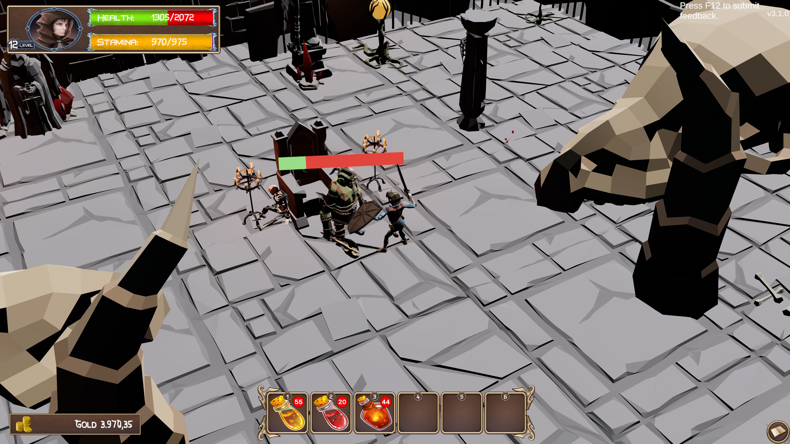 I’ll first highlight some gameplay aspects that I consider lacking. The main character does not automatically attack nearby enemies, making constant clicking tiring. Using ranged weapons feels clunky and has minimal impact on combat, while melee combat is reduced to basic mechanics like simple swings and stabs. The game relies too heavily on potion spamming instead of strategic use of abilities. On top of that, skill descriptions are unclear; the only thing I understood is that strength and agility allow you to use certain types of weapons. When using potions, your character interrupts their current action, which often leads to repeated movements.