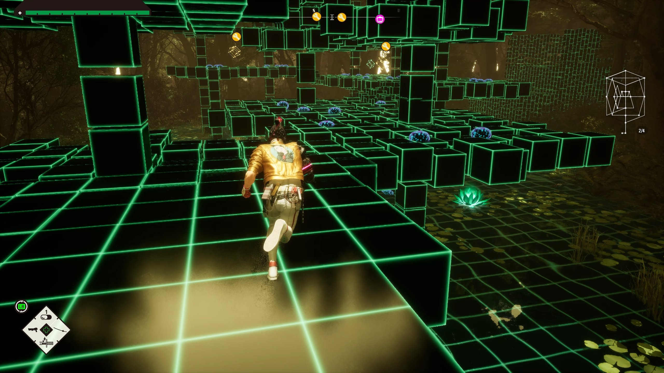 Between missions, The Last Night serves as a hub and is one of the game’s strongest features. Presented in pixel art, it houses shops, minigames, upgrade systems, and social spaces. Cooking curry with Romeo’s mother, tending the Bastard garden, answering bizarre quiz questions, and navigating a Pac-Man-style upgrade maze all contribute to a sense of place. These activities are tactile and personal, reinforcing the feeling that you are living inside this strange universe.