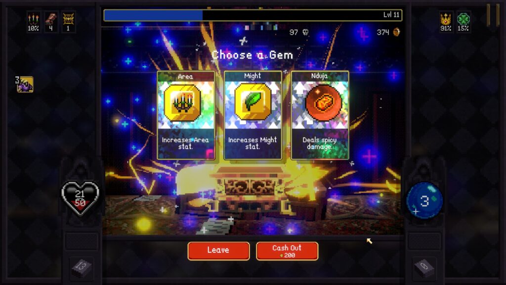 On top of cards, you also have gems that can be socketed into them, adding another layer of customization. These gems can modify how cards behave, improve stats, or even let you reuse them in certain situations. Combined with the stat system, things like damage, mana, projectile count, and overall efficiency, it becomes very clear that you can’t ignore progression outside of your deck. If you do, you’ll feel it later.