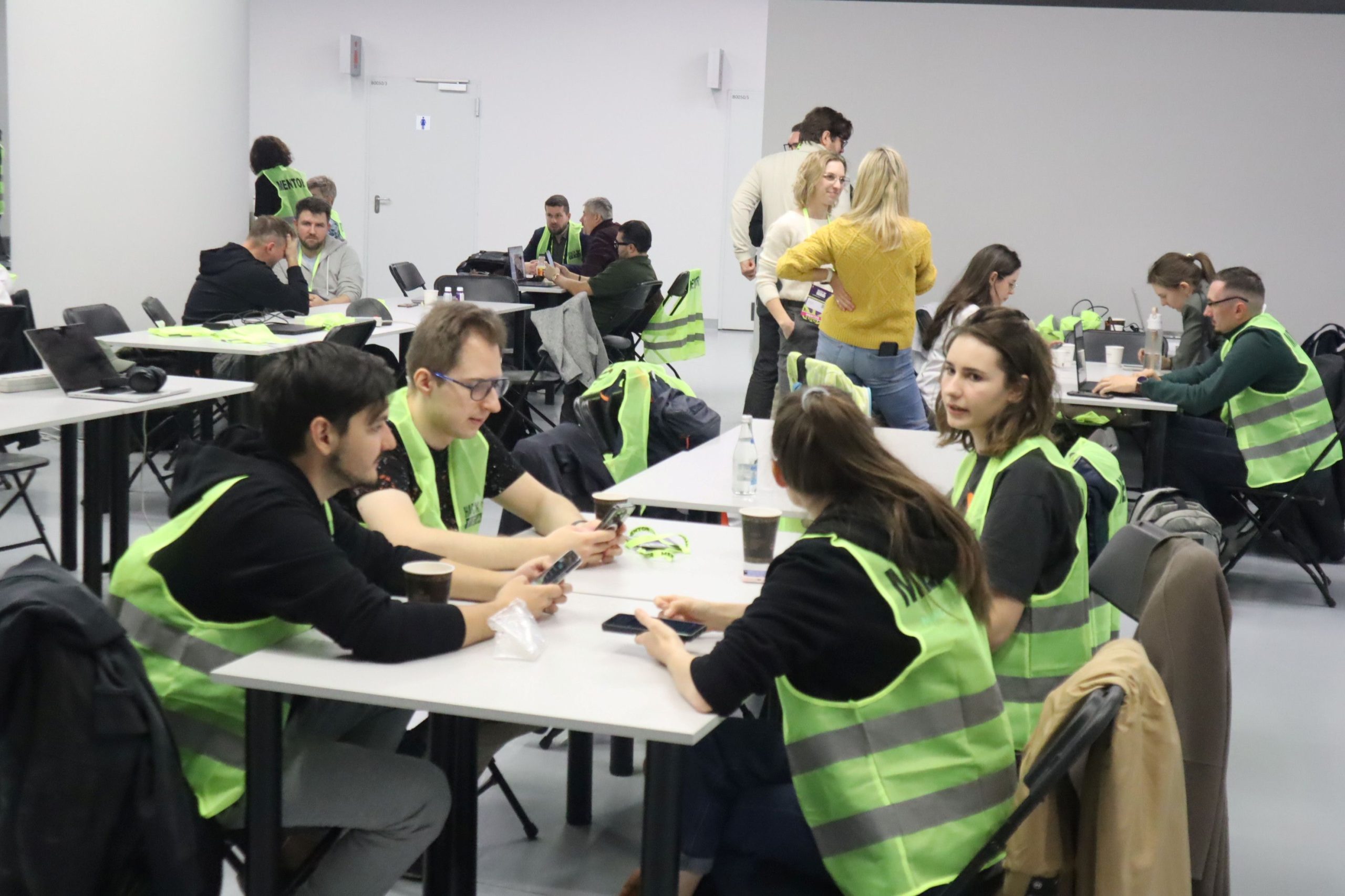 We arrived at the venue well before the start of hackathon, so we had plenty of time to explore every nook and cranny of each of the prepared zones. And there were quite a few of them – we started with the main hall, where the teams were stationed. That’s where the work on the projects took place and the keynote speeches were given. Nearby was the Mentors Village full of IT experts ready to help participants refine their ideas.